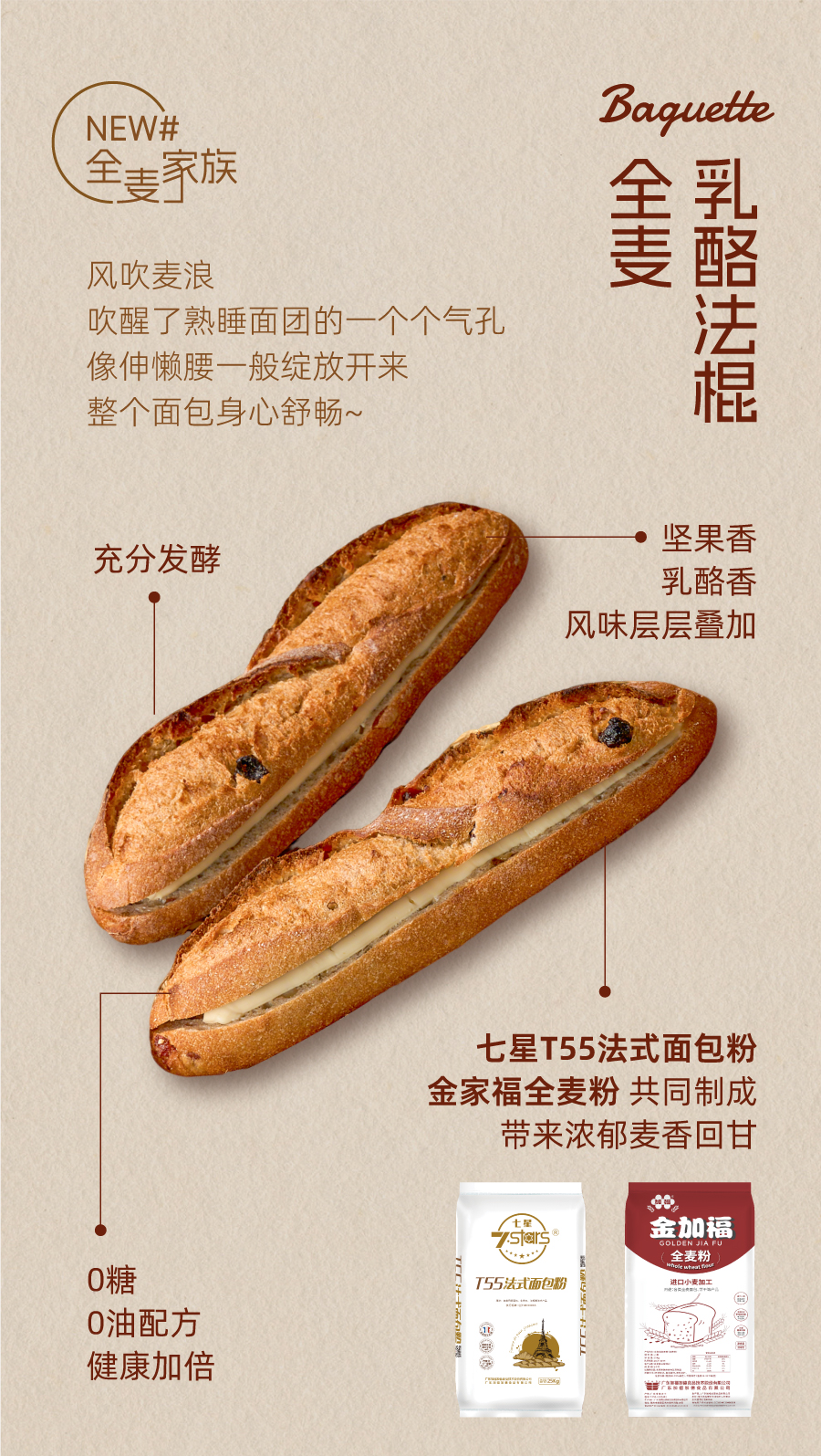 经典法棍新式演绎【全麦乳酪法棍】一口下去真的好哇噻~